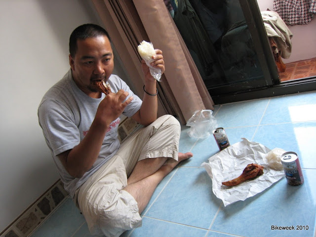 Thật ra nói đây là 1 ngày đói khổ thì cũng không đúng, buổi trưa lúc vừa qua biên giới Cam, Thái là 2 thằng đã làm dĩa cơm chiên hải sản rồi, lại còn làm thêm mỗi đứa 2 ly chè long nhãn ngon tuyệt nữa, có điều lúc này sao quên mất không chụp hình. Sau đó khi gần tới Bangkok 2 thằng còn ghé cây xăng làm 2 cái bánh bao cùng sữa tươi mới vắt.