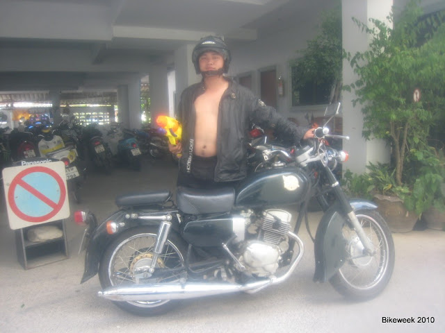 Buổi tối 2 thằng nai nịt gọn gàng chạy loanh quanh với con súng nước trên tay vui đáo để. Dân Thái cực kì biết làm ăn, đã là Songkhran thì phải bắn súng nước hay té nước mới vui, mọi người bắn súng thật hào hứng, bình nước theo súng thì bé tẹo, vậy là 10 bath 1 bình, một tối đi chơi cho bằng thích mất vài trăm ngàn vnd nhanh như điện. Hai thằng gửi xe rồi phi vào con đường ăn chơi hòa nhập cùng mọi người. Các bạn xem clip nha Chiến sĩ BW http://lh5.ggpht.com/_PSnkWWm5OAE/S_...0/IMG_2661.JPG Bắn phá mệt nhoài, cả hai chui vào 1 góc khu phố ăn uống rồi về. Trên đường về ghé thay nhớt cho cái xe 32, chuẩn bị cho ngày mai. Tất cả hy vọng và sửa xe trong những ngày tết đã chấm dứt, Bw phải ở lại chờ bộ số bay từ VN qua. Kế hoặch lòng vòng ThaiLand phá sản, số tiền 1st để lại cho 2 thằng bây giờ dồn cho bw ở lại cầm cự, ntv về nước trước theo ngõ Lào. |