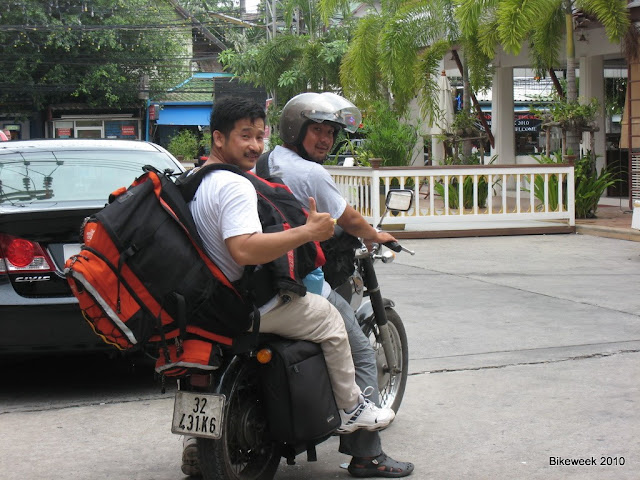 Trong khi chờ bw thay ruột, ae kịp phát hiện ra nhiều hư hỏng hơn, rớt ốc tùm lum, và tệ nhất là bộ số của bw có vấn đề. Hội ý nhanh chóng ntv chở Lemoto đi kiếm tiệm sửa xe, hỏi xem có sửa được bộ số trong ngày không. 2ae tới tiệm sửa xe làm quen với 1 số biker người Thái cũng như biker các nước. Buồn cười nhất là có 1 anh người Kuwait chay GS 1200. A nghĩ mình cũng chạy con moto nào tương đương và bật ngửa khi mình chỉ vào CD nói chạy từ VietNam qua. Nói chung chả ai nghĩ 2 con CD nhỏ bé có thể vượt từng đó quãng đường đến dự Bikeweek. Đoạn này a Lemoto có chụp 1 số hình bằng Iphone, nếu được post lên nha.