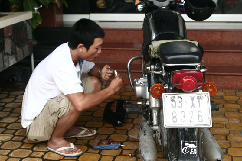 Àh, bugi ướt thế này, nổ gì nổi. Lau phát là hết, nhá.