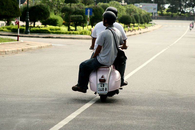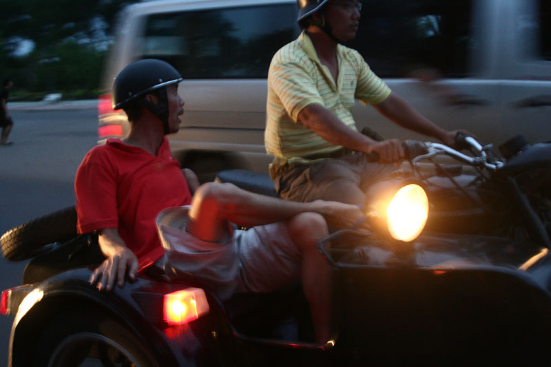 Ngưỡng mộ anh áo đỏ quá! Ngồi thùng trông oách xà lách ghê, thèng pụng pự chở anh ấy chắc cũng sướng vì nhẹ xe